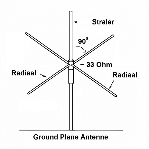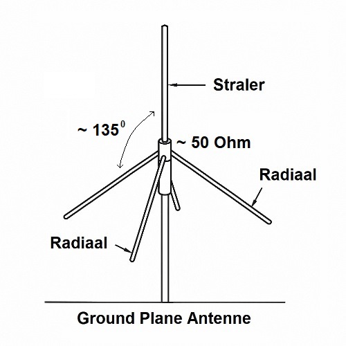Door de radialen van een Groundplane Antenne onder een hoek van 180 graden te positioneren, komt de constructie overeen met een klassieke dipoolantenne. Bij een open dipool bedraagt de impedantie op zijn resonantiefrequentie maximaal ongeveer 75 ohm. Deze eenvoudige aanpassing in de hoek maakt het mogelijk om de antenne efficiënter aan te passen aan de rest van de zendinstallatie, met als resultaat minder verlies, betere prestaties en minder reflectie (lage SWR). Kortom: de hoek tussen de radialen en de straler is niet zomaar een constructieve keuze, maar een belangrijke afstemmingsparameter die een directe invloed heeft op de elektrische eigenschappen van je antennesysteem.