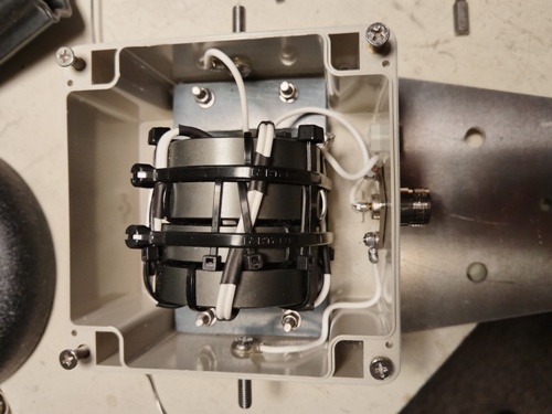 Unsere neueste Errungenschaft im Bereich der Baluns ist ein speziell gebauter 3:2-Spannungsbalun, der mit Blick auf Zuverlässigkeit, Leistungsreserven und verbesserte Eigenschaften im unteren Frequenzbereich der Amateurfunkbänder entwickelt wurde. Dieser Balun ist für eine Antenne mit einer Impedanz von etwa 33 Ohm ausgelegt und sorgt für eine effiziente Anpassung an den standardmäßigen 50-Ohm-Eingang eines Senders. Dieser neue Balun stellt keine einfache Aufrüstung dar wir haben uns bewusst für eine robuste Ausführung entschieden, die auch bei höheren Leistungen zuverlässig arbeitet. Das Herzstück des Baluns besteht aus vier Ferritringkernen vom Typ FT240-31, die für ihre hervorragenden Eigenschaften im unteren Frequenzbereich bekannt sind. Die Kombination mehrerer Kerne erhöht die thermische Belastbarkeit deutlich, sodass dieser Balun auch unter höherer Leistungsaufnahme problemlos betrieben werden kann.Für die Wicklungen wurde PTFE-isolierter Draht verwendet, der deutlich höhere Temperaturen aushält als herkömmlicher Draht mit PVC-Isolierung. Dies ist besonders wichtig bei Dauerbetrieb oder bei Einsatz in wärmeren Umgebungen, in denen PVC-Isolierung spröde werden oder schmelzen könnte. Durch die Wahl hitzebeständiger Materialien erhöhen wir die Zuverlässigkeit und Lebensdauer des Baluns erheblich.Der Balun wurde sorgfältig in einem soliden Kunststoffgehäuse aufgebaut, das ausreichend Platz für die vier Ringkerne, die Verdrahtung und das Befestigungsmaterial bietet. Für den Anschluss der Antenne und der Koaxleitung wurden robuste Anschlussbuchsen installiert. Im Inneren ist alles sowohl mechanisch als auch elektrisch fest montiert, um ein Verrutschen oder Lösen bei Vibrationen oder Temperaturschwankungen zu verhindern. Die untenstehenden Fotos geben einen guten Eindruck vom Aufbau vom Einsetzen der Ringkerne bis zur Montage des Baluns im Gehäuse.
