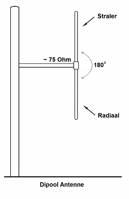 Door de radialen van een Groundplane Antenne onder een hoek van 180 graden te positioneren, komt de constructie overeen met een klassieke dipoolantenne. Bij een open dipool bedraagt de impedantie op zijn resonantiefrequentie maximaal ongeveer 75 ohm. Deze eenvoudige aanpassing in de hoek maakt het mogelijk om de antenne efficiënter aan te passen aan de rest van de zendinstallatie, met als resultaat minder verlies, betere prestaties en minder reflectie (lage SWR). Kortom: de hoek tussen de radialen en de straler is niet zomaar een constructieve keuze, maar een belangrijke afstemmingsparameter die een directe invloed heeft op de elektrische eigenschappen van je antennesysteem.